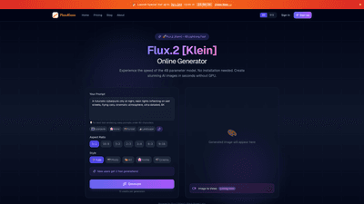 Explore Flux.2 [Klein] online for free—create stunning AI art instantly without installations or GPU. A strong Midjourney alternative.