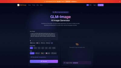 Create stunning AI visuals fast with the Free GLM-Image Online generator. No queue, quick results using the latest GLM models—alternative to Zhipu AI.