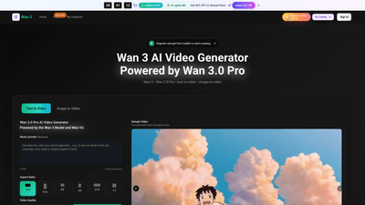 Wan 3 AI video generator turns text or images into clean clips using Wan 3 Model and Wan V3 tuning. Start free, scale with Wan 3 APP & Wan-3 workflows.
