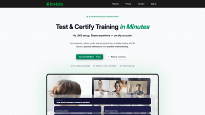 Turn webinars, videos, and documents into certified, testable training. Built for training providers and organizations that need proof of understanding — without replacing or needing an LMS.